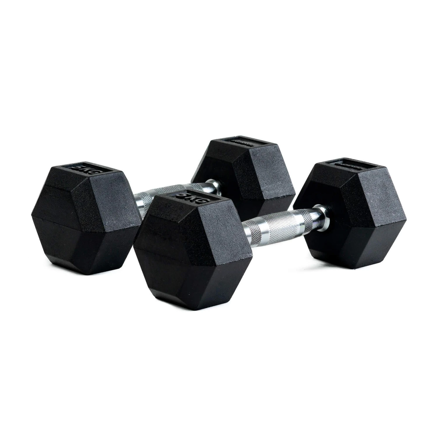 Compra en Decathlon Mancuernas de Goma Hexagonales profesionales 5Kg Mancuernas de Goma Hexagonales profesionales 5Kg