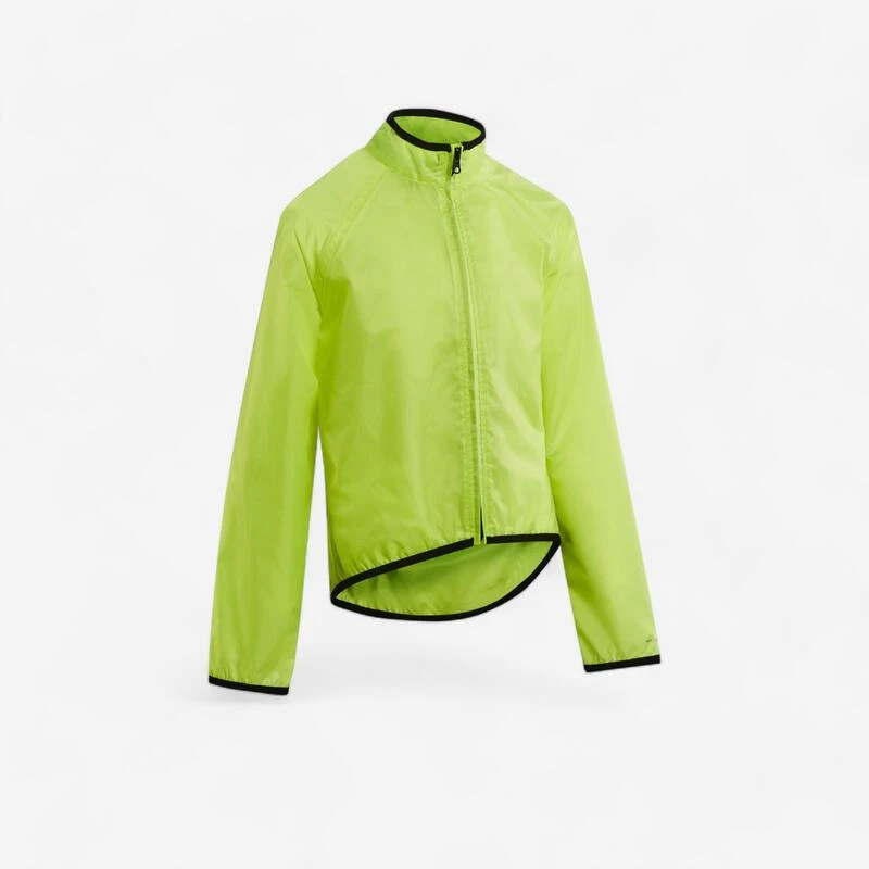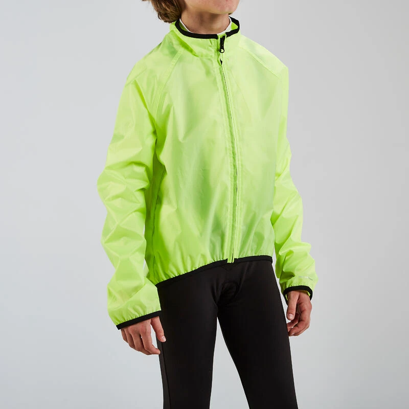 Compra en Decathlon Chaqueta impermeable ciclismo niños 100 amarillo ¿Cae un chaparrón? Esta chaqueta de materia impermeable te protege de la lluvia y del viento durante tus salidas en bici.