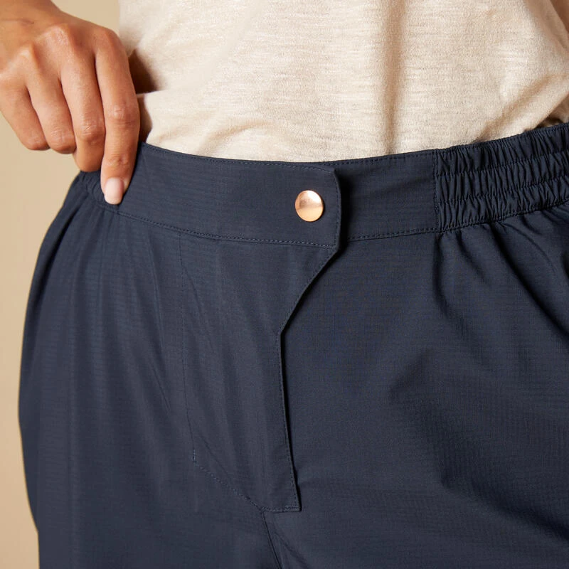 Compra en Decathlon SOBREPANTALÓN LLUVIA CICLISMO URBANO 900 AZUL MUJER ¿Te desplazas en bici con cualquier tiempo y quieres proteger tus piernas de la lluvia? Sobrepantalón impermeable de mujer creado para desplazamientos diarios.