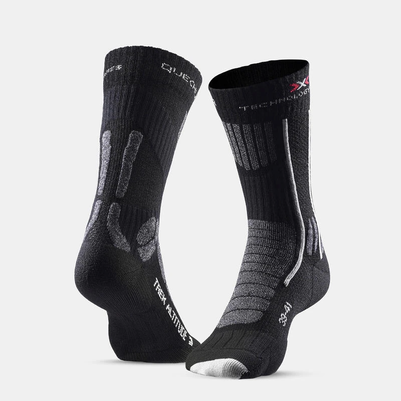 Compra en Decathlon Calcetines altos de montaña y trekking anti-rozaduras Quechua Trek Altitude Estos calcetines de trekking, en colaboración con XTechnologie, han sido diseñados para realizar tus rutas con la máxima comodidad y ventilación en tus pies.