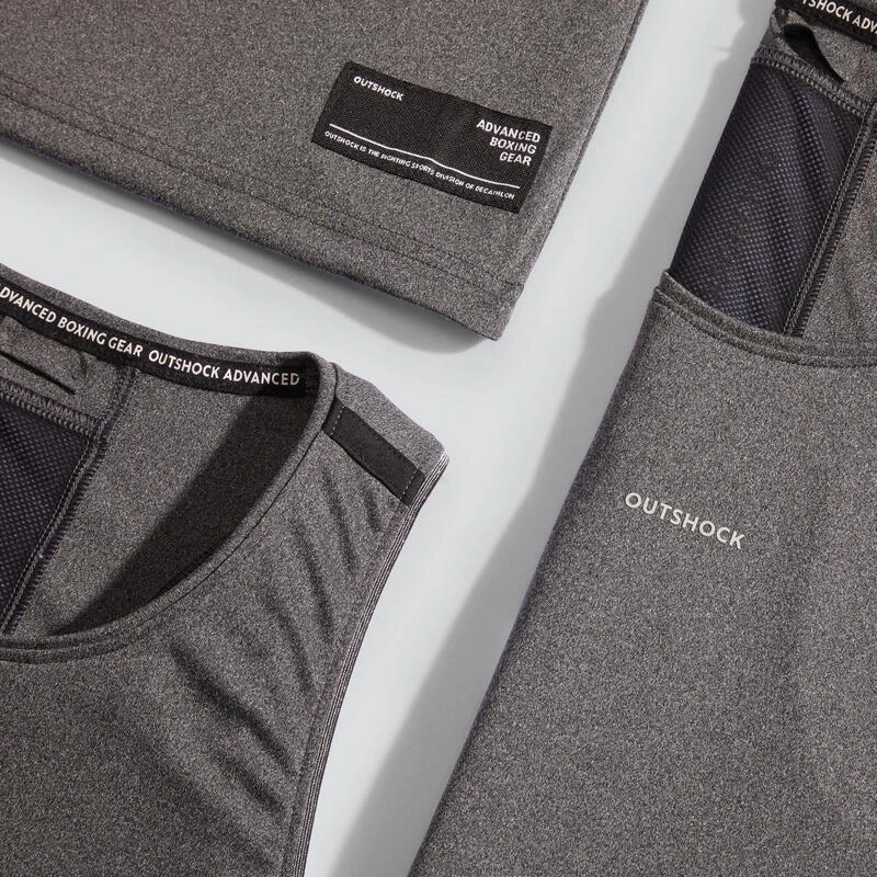 Compra en Decathlon Camiseta de boxeo sin mangas mujer Outshock 500 gris Perfecta para las mujeres que practican boxeo y buscan una camiseta sin mangas de entrenamiento ligera y transpirable.