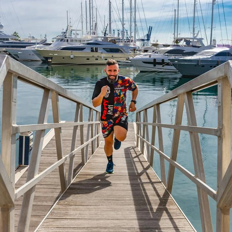 CAMISETA DE RUNNING #PARTYRUN Para HOMBRE – KAMUABU Color NEGRA 90grs