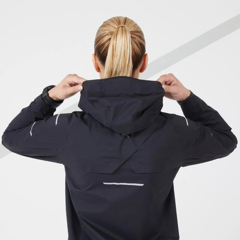 Compra en Decathlon CHAQUETA DE RUNNING MUJER IMPERMEABLE CORTAVIENTO – KIPRUN RAIN+ NEGRO Nuestros diseñadores, practicantes de running, han desarrollado esta chaqueta de running impermeable para las salidas largas bajo la lluvia.