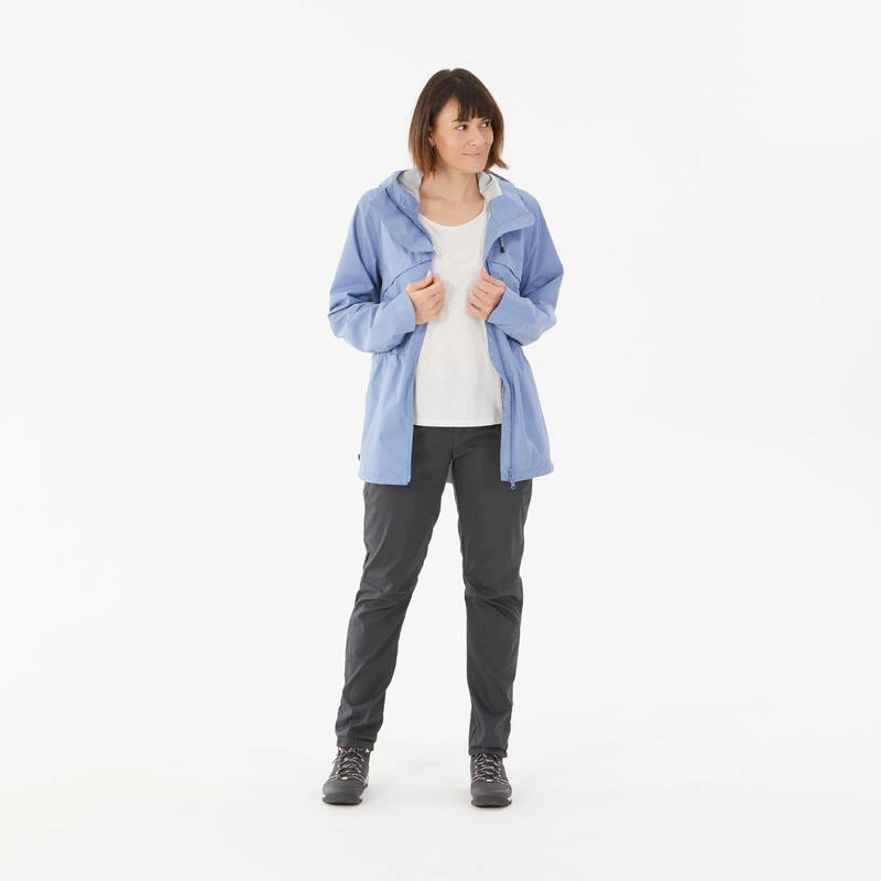 Compra en Decathlon Chaqueta impermeable de montaña y trekking Mujer Quechua NH500 Los diseñadores senderistas han ecodiseñado la chaqueta NH500 impermeable de poliéster reciclado para hacer senderismo en la naturaleza con tiempo lluvioso.