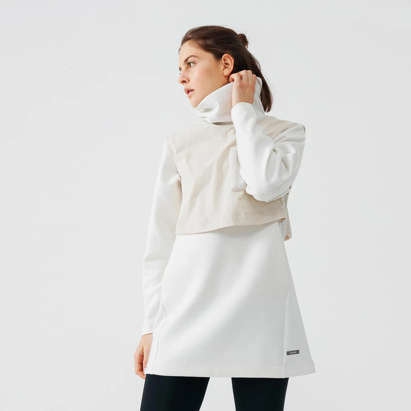 Compra en Decathlon Sudadera térmica running cálida Mujer Warm+ Long Sudadera de running grande, cómoda y cálida, para salir a correr con frío. De corte largo por debajo de la cadera. Con 3 bolsillos, 1 con cremallera.