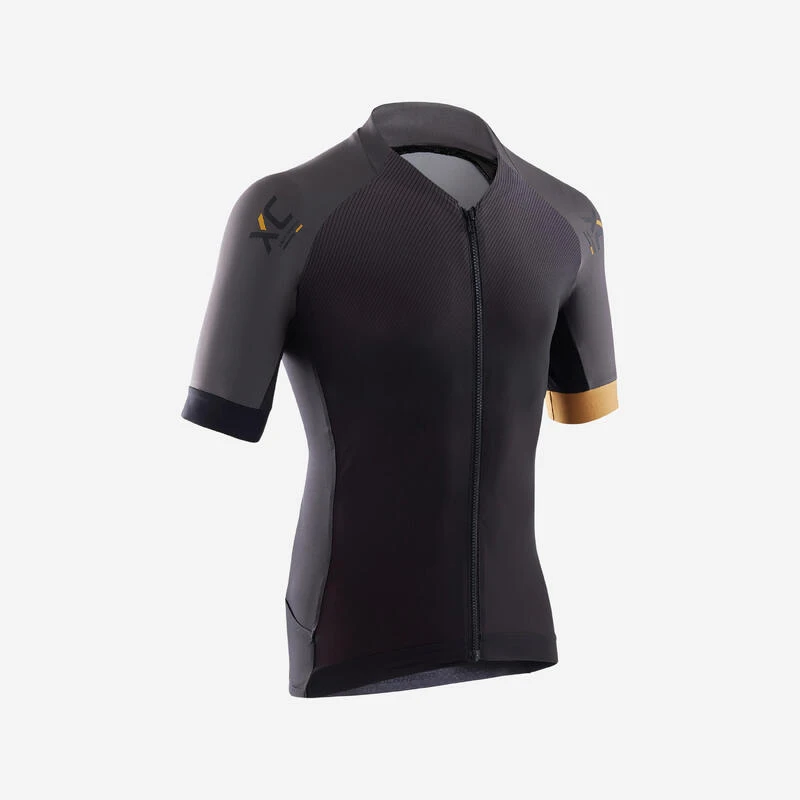 Maillot Ciclismo MTB Manga Corta Hombre Rockrider Xc Light Negro Y Ocre