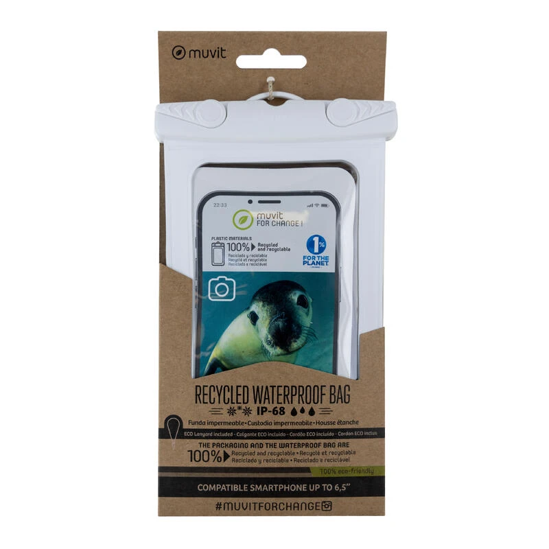 Compra en Decathlon muvit for change funda acuática universal blanca Si quieres ir a la playa o la piscina y necesitas la máxima protección para tus dispositivos, esta Funda Acuática, de la marca muvit for change fabricada en materiales 100% reciclados