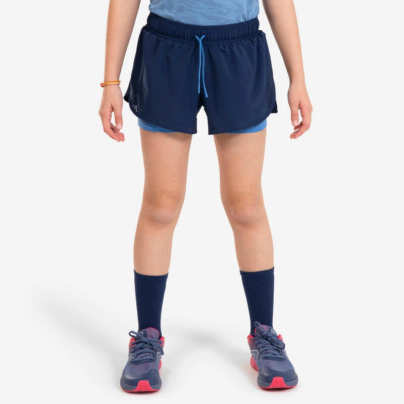 Compra en Decathlon Pantalón corto mallas running transpirable Niña – KIPRUN DRY+ 2 en 1 tejano y Nuestro equipo de diseño ha desarrollado este pantalón corto con mallas 2 en 1 para niñas que practican running o atletismo con tiempo caluroso en club o en el colegio.