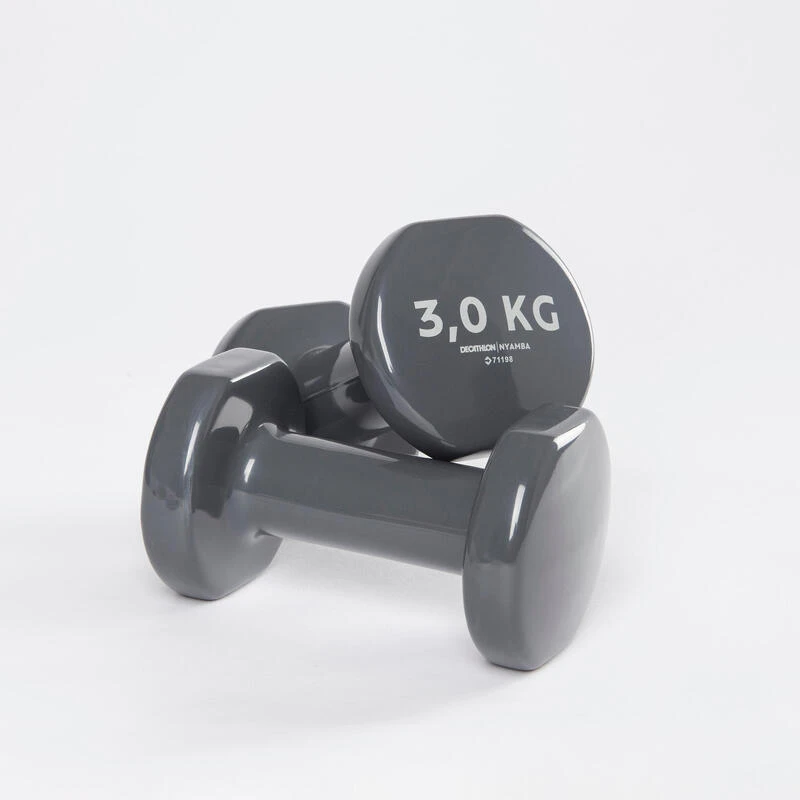 Compra en Decathlon Pesas 2 x 3Kg de vinilo Fitness Gimnasia en casa Pilates Nyamba Gris Este par de mancuernas ergonómicas está diseñado para un agarre fácil: ¡todo lo que necesitas para una sesión en condiciones óptimas!