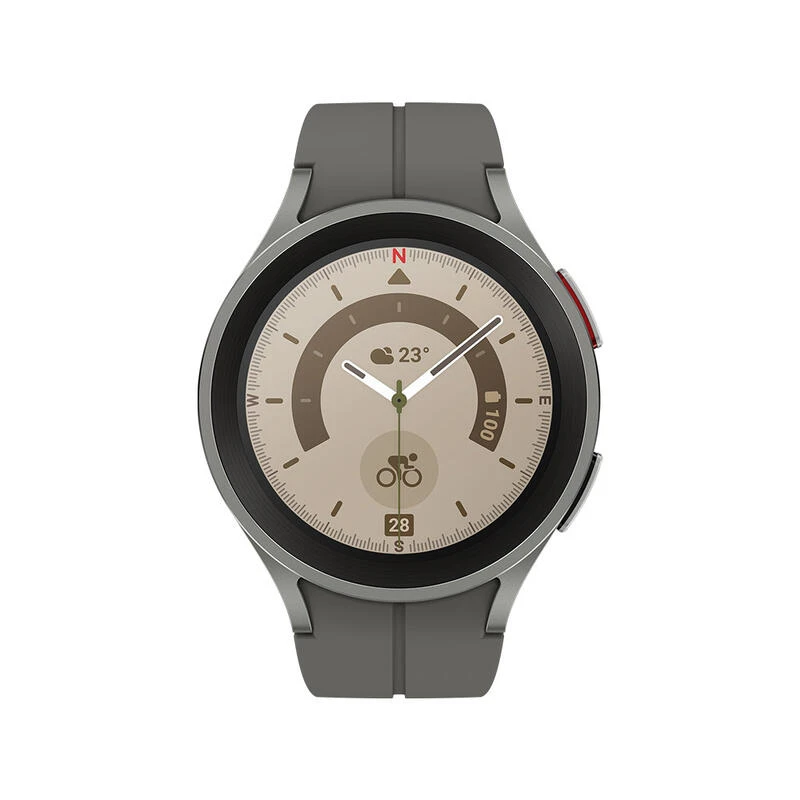 Compra en Decathlon Reloj inteligente Samsung Galaxy Watch5 Pro 45mm LTE Compra ya tu Samsung Galaxy Watch5 Pro, pantalla de cristal de zafiro con 1.6 veces más resistente ante roturas, seguimiento de rutas por GPS para ciclismo y senderismo con un 13% más de batería.
