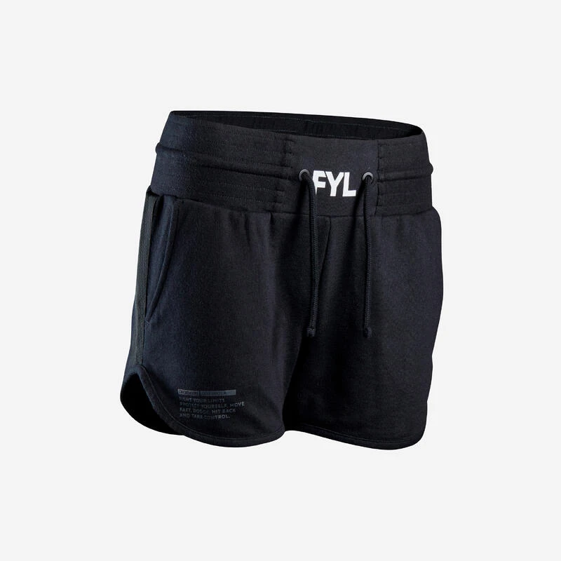 Compra en Decathlon Short de boxeo mujer Outshock 100 negro La practicante de nivel iniciación que busca un short de entrenamiento con un corte que garantice la libertad de movimientos.