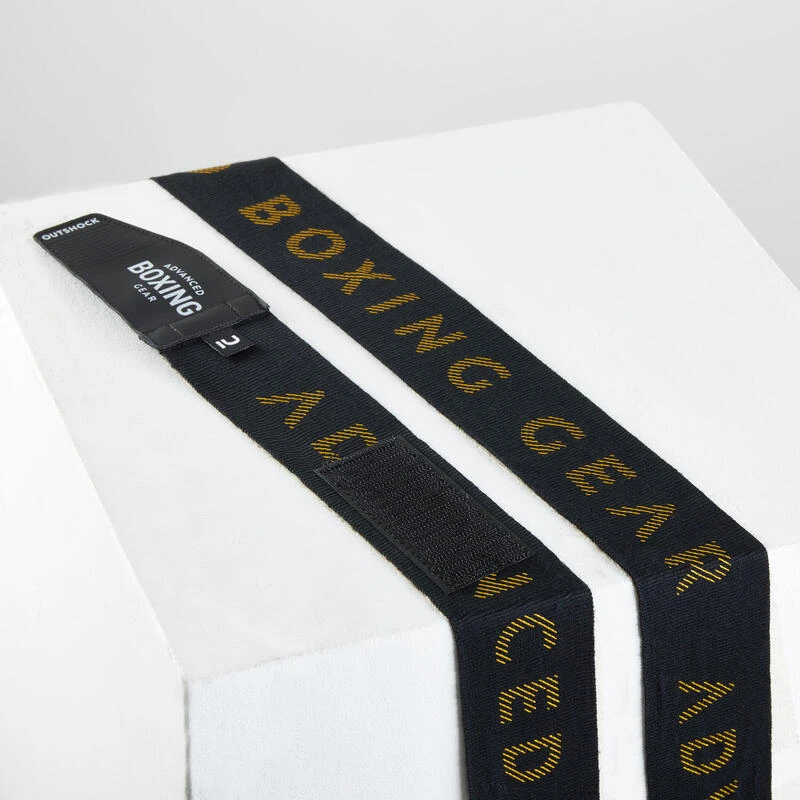 Compra en Decathlon Vendas de boxeo 4,5 M Outshock negro/oro Vendas de boxeo que te ayudan a proteger las articulaciones de la mano y la muñeca, además de absorber el sudor en las sesiones de boxeo y deportes de contacto.