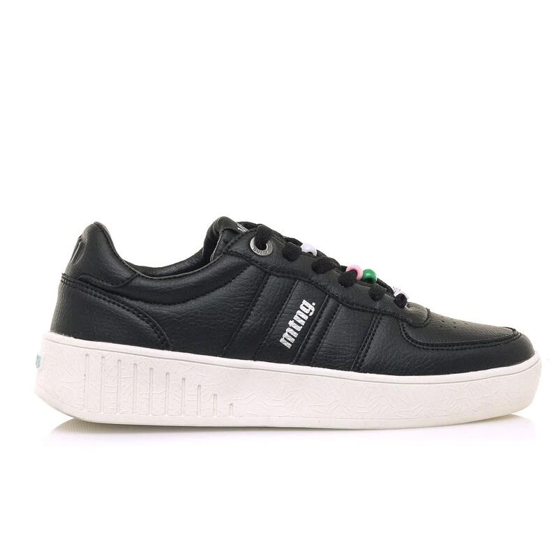 Compra en Decathlon Zapatillas de caminar para mujer mtng delta en color negro Deportiva Delta para chica de color napa negro con cierre de cordones planos y detalle de abalorios de colores, tiene suela gruesa de color blanco con planta foam, con la que irás cómoda en tu día a .